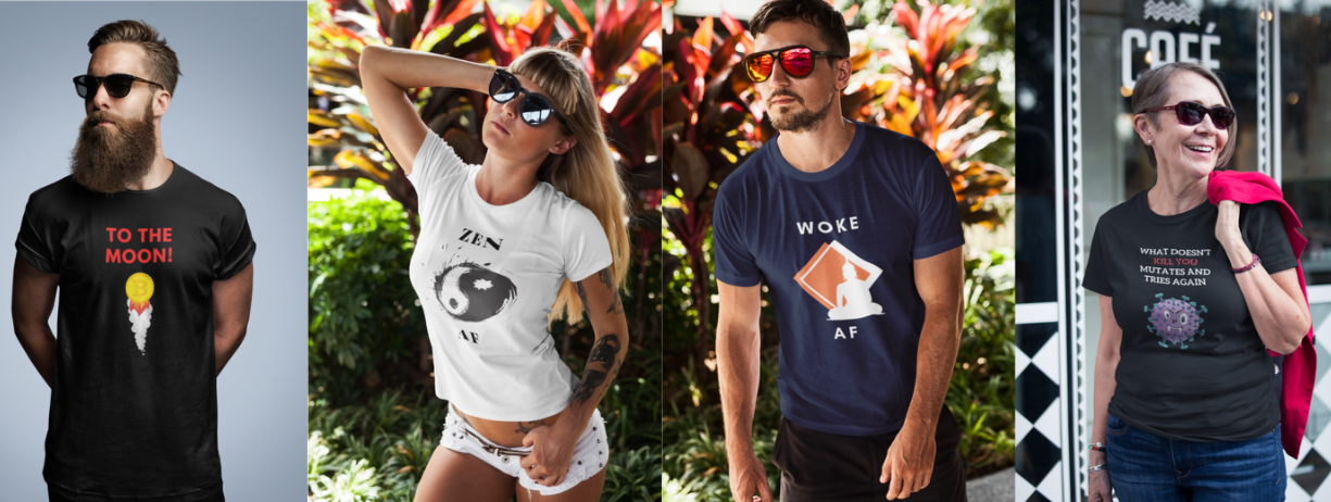 Whether you're meditating on the meaning of life, decoding the Universe's mysteries through science, mining crypto, or just here for the laughs and good vibes — there's a tee with your mindset written all over it.